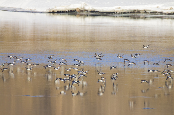 Визуальный подсчет лучше дублировать фотосъемкой, которую хорошо проводить широкоугольным объективом с последующей склейкой панорамы и подсчетом раздельно селезней и уток в Photoshop с использованием инструмента «счетчик» (в CS-5 - Меню «Анализ» - инструмент «Счетчик») или программы для смартфона Point Counter.