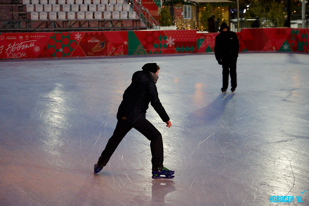 Зато стабильно кого-нибудь можно встретить на центральной площади Владивостока. Здесь каток будет работать до начала февраля.