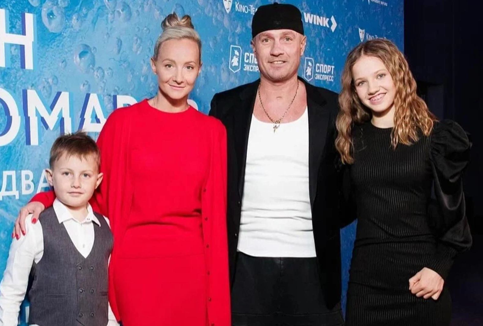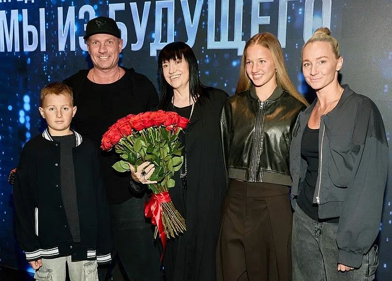 Роман Костомаров и Оксана Домнина с детьми и Аллой Духовой.