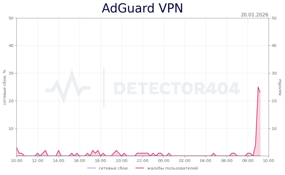 В ряде городов России наблюдается всплеск жалоб на работу AdGuard VPN. Об этом сообщили в пресс-релизе системы мониторинга сбоев сайтов и приложений DownDetector.