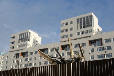 Жилые секции планировали на 8-12 и 9-16 этажей, а офисные – на 3-4 этажа. Но строительство одного блока первой секции затянулось на шесть лет.