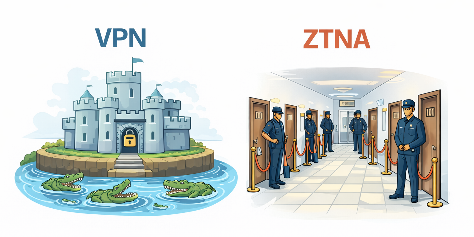 VPN долгое время считался стандартом удаленного доступа. Он создает зашифрованный туннель и подключает пользователя к сети. Проблема в том, что после подключения пользователь часто получает слишком широкие возможности, а атакующий с украденными учетными данными получает примерно то же самое.