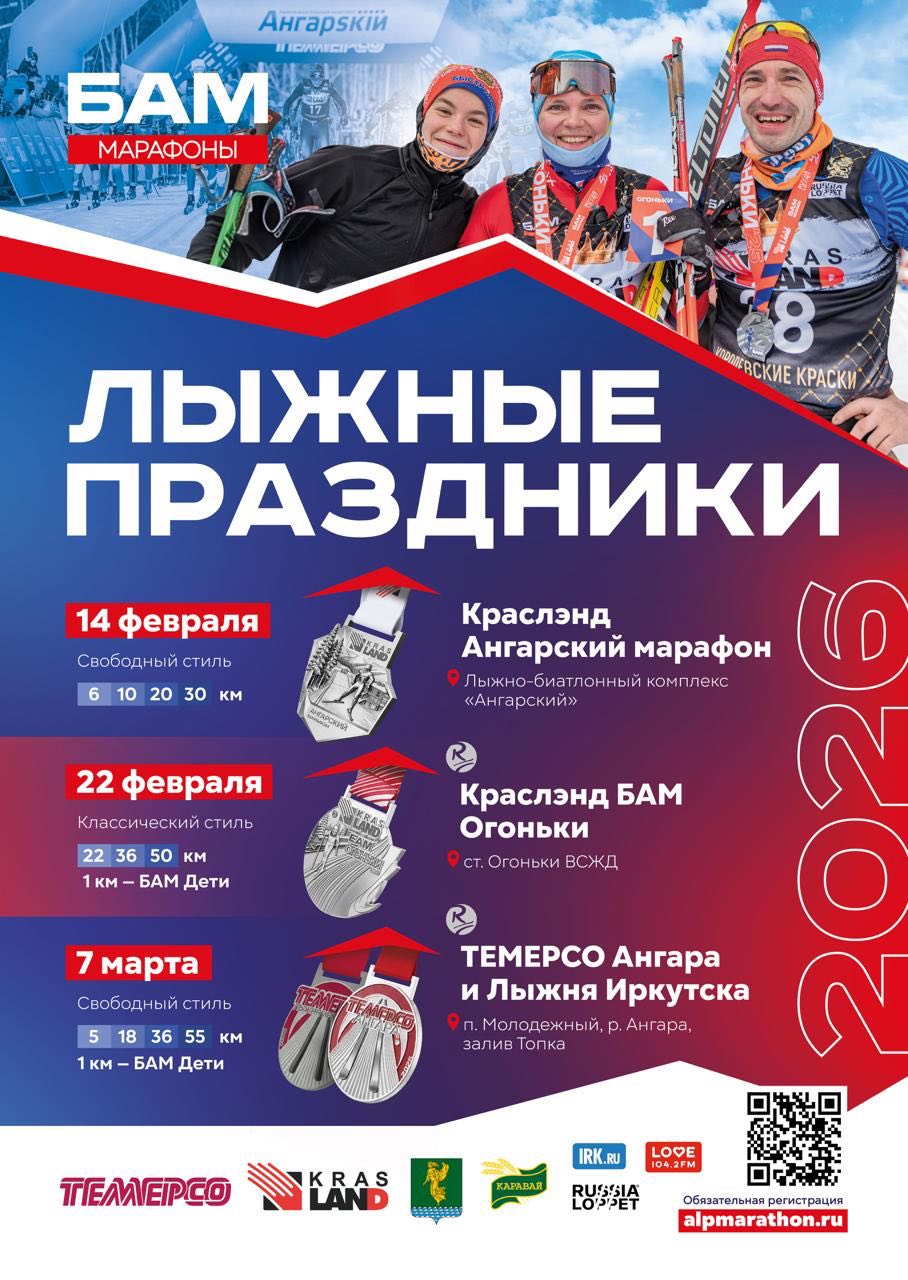 Серию мероприятий 14 февраля откроет «Краслэнд Ангарский марафон». Это спортивное событие проходит на самом современном объекте Иркутской области для лыжных гонок и биатлона – ЛБК «Ангарский». Идеально подготовленные трассы по стандарту Федерации лыжных гонок России на всех дистанциях – 6, 10, 20 и 30 км. Комфортная обстановка современного спортобъекта, удобная парковка. Предварительную регистрацию уже прошли более 200 человек.