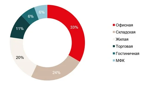 По словам экспертов, несмотря на снижение общего объема инвестиций в недвижимость в 2025 году, динамика по сегментам существенно различалась. Тройка лидеров по сравнению с 2024 годом не изменилась: офисная недвижимость лидирует с 33% вложений, за ней следуют склады (24%) и жилой сектор (20%). Впрочем, во всех этих сегментах объем инвестиций сократился на 17–55% год к году. Зато торговля и гостиничная недвижимость продемонстрировали рост в 1,5 раза, причем гостиничный сегмент достиг исторического рекорда в 60 млрд рублей ввиду закрытия ряда знаковых для рынка сделок.