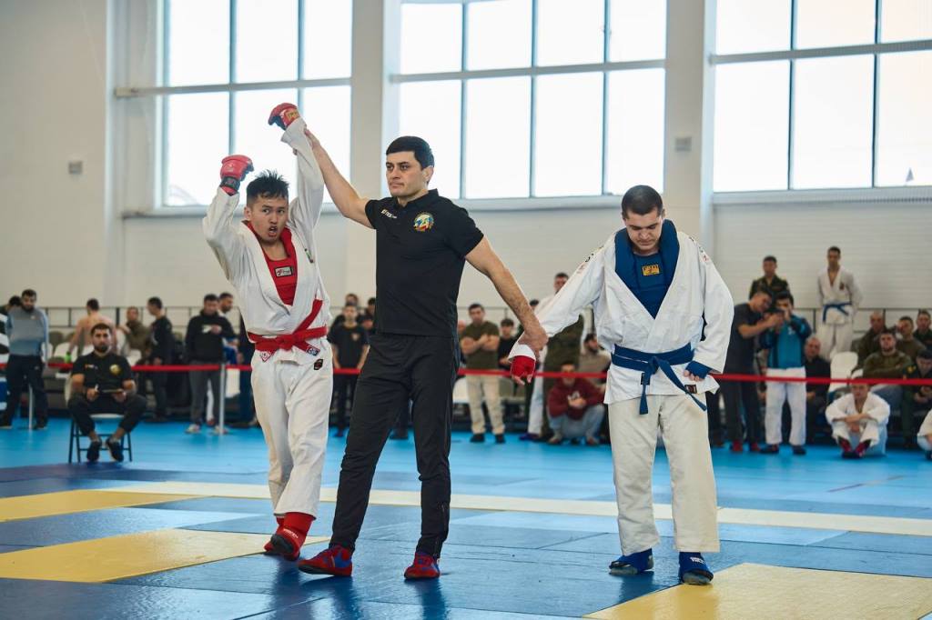 В спортивном зале физкультурно-оздоровительного комплекса «Воин» в Биробиджане прошёл чемпионат Восточного военного округа по армейскому рукопашному. Турнир собрал 120 бойцов из разных регионов Дальнего Востока. По итогам двухдневных поединков две бригады из ЕАО заняли призовые места в командном зачёте, сообщает корр. РИА Биробиджан со ссылкой на ТГ-канал Департамента по физкультуре и спорту ЕАО.