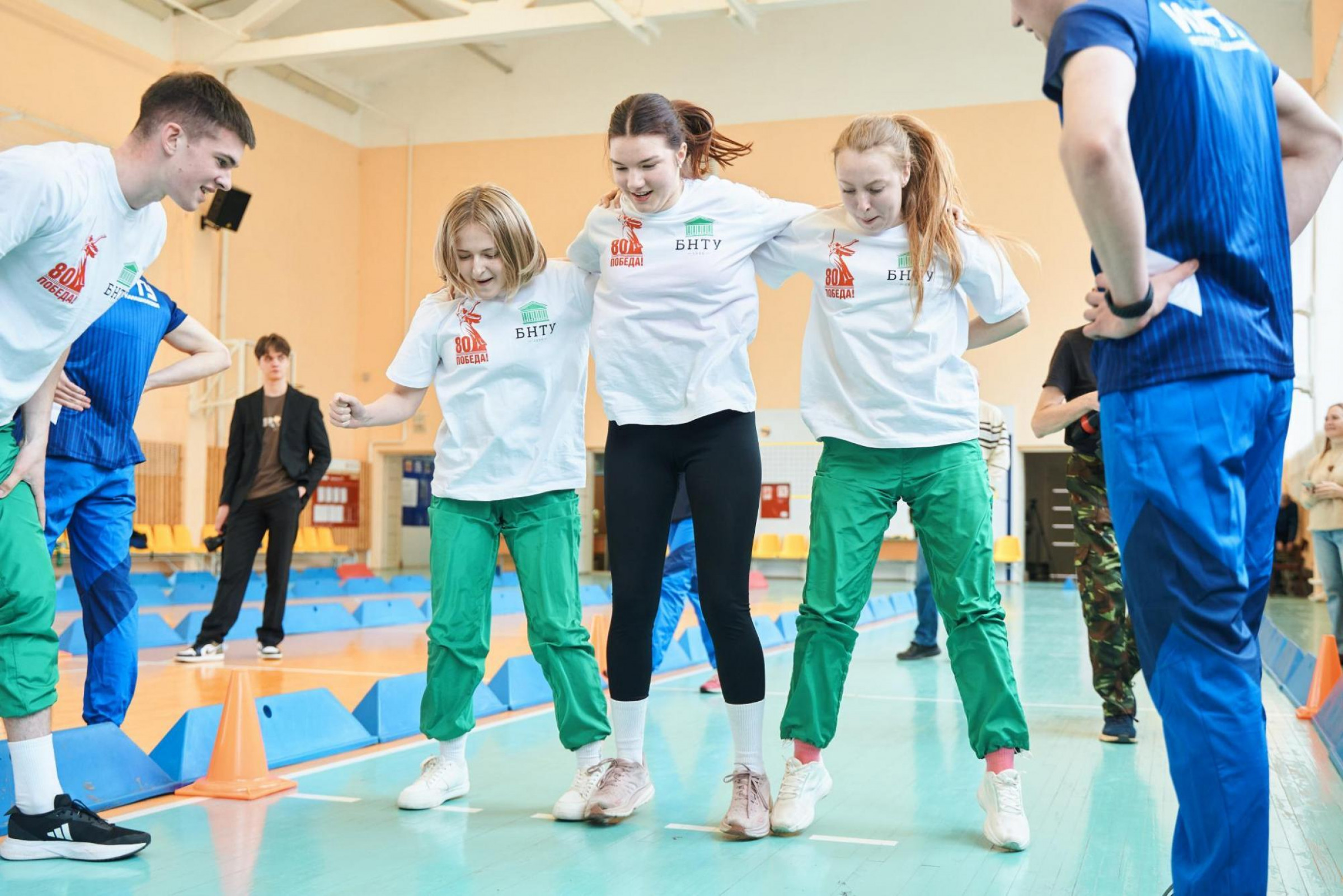 В год 80-летия Великой Победы в рамках ХХ Международного студенческого легкоатлетического пробега Минск – Нижний Новгород – Ижевск делегация БНТУ преодолела около 2 тыс. км. По пути в столицу Удмуртии работники и студенты-активисты, проявившие себя в спортивной и общественной деятельности вуза, глубже узнавали историю Великой Отечественной войны, принимая участие в митингах, пробегах и тематических экскурсиях. В конечной точке маршрута, Ижевске, политеховцы приняли участие в торжественном митинге, посвященном 80-летию Великой Победы. Почетные гости поздравили присутствующих с праздником, артисты исполнили патриотические песни, представители вузов возложили цветы и почтили память героев войны. Кульминацией стало заложение руководителями вузов – участников пробега аллеи Победы в Ижевске.