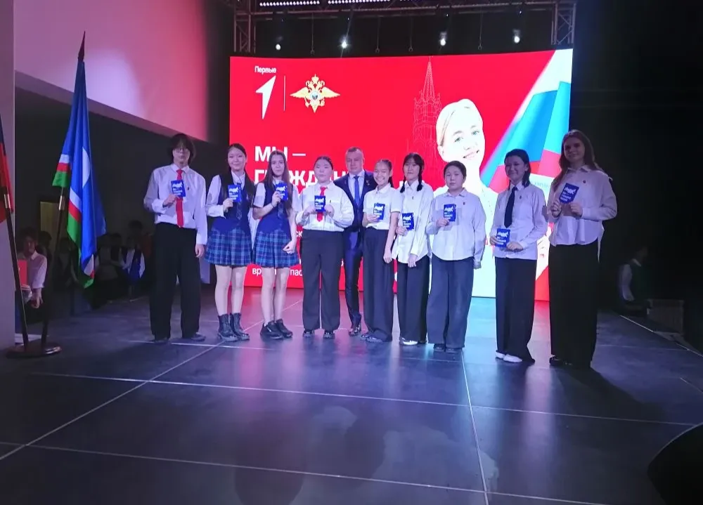 Паспорта граждан России вручили члену школьного юнофлотского клуба, участнику проектов «Зарница 2.0», «Первая помощь» Афанасию Иванову; участнице проектов «Зарница 2.0», «Профэкспедиции», «Благо твори», призеру проекта «Вызов первых», участнице проекта «Хранители истории» Сардане Артемьевой; лидеру-наставнику «Орлят России», участнице проектов «Юннаты Первых», «Вызов Первых» Алене Алексеевой; лауреату Республиканского детско-юношеского фестиваля искусств «Белый олененок» Олегу Аргунову и другим.