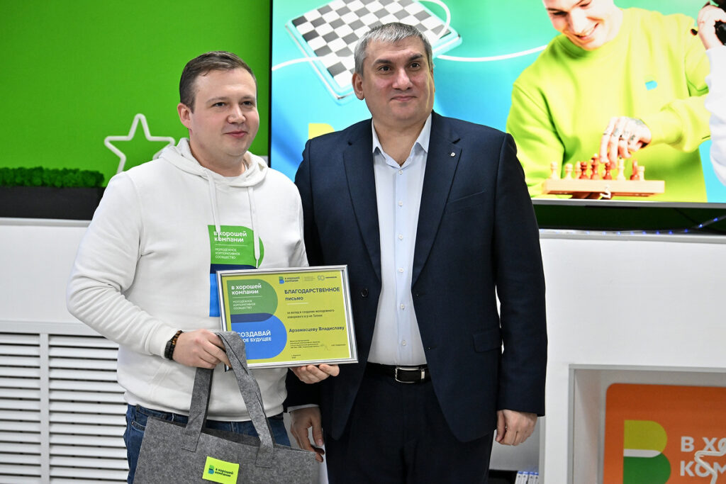 Активным участникам создания нового пространства благодарственные письма вручил директор департамента горного производства Заполярного филиала Тигран Дарбинян: