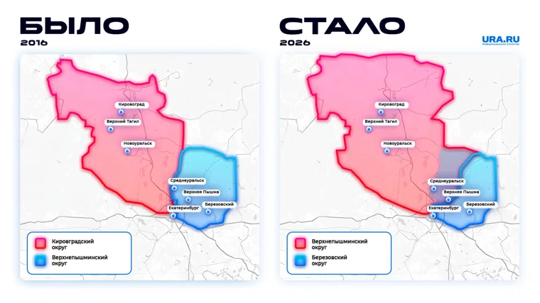 Верхнепышминский округ вырос за счет территории Кировградского округа, а Березовский стал отдельной административной единицей на избирательной карте