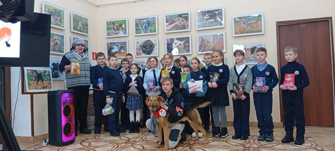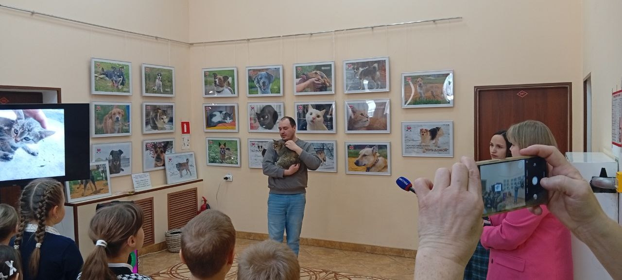 В открытии выставки приняли участие ученики школы №35. Дети принесли корм, который оставили в специальной корзине в фойе. Он будет передан в приют "Доброе сердце".
