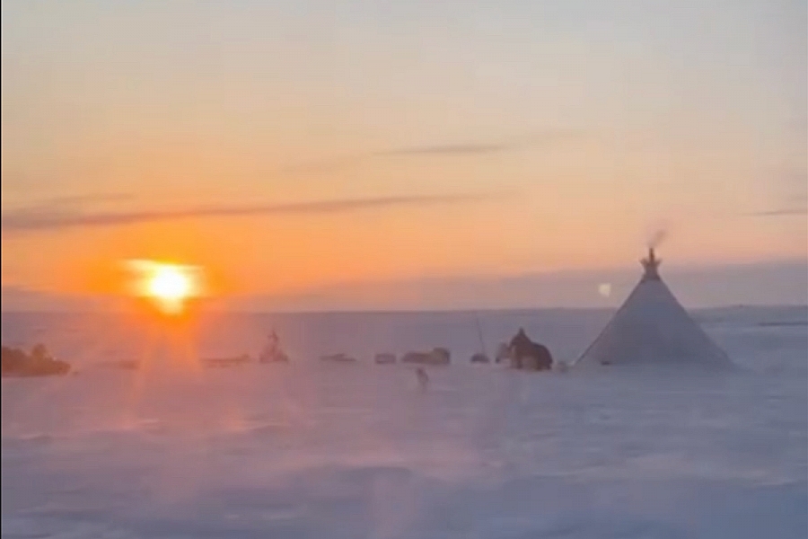 Стойбище оленеводов в районе Воркуты, где ямдают кочевники общины Ямб то