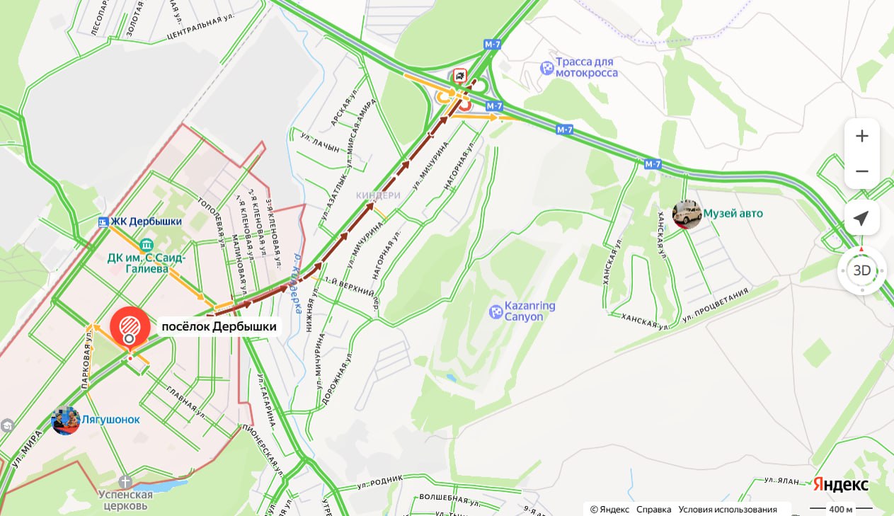На выезде из Дербышек собралась пробка длиной более 2 километров. Об этом свидетельствуют данные «Яндекс.Карт». Так, судя по картам, пробка начинается на пересечении улиц Мира и Вяземской. При этом движение затруднено до самого съезда на М7.