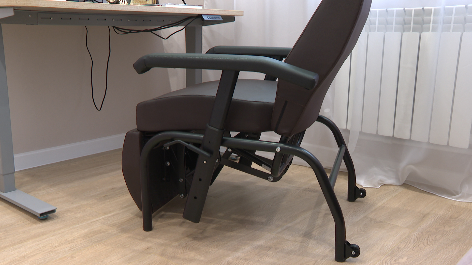 В теле до сих пор носит осколки. Чтобы снизить нагрузку, Фонд оборудовал в доме Дмитрия адаптивный рабочий кабинет. Кресло позволяет менять положение тела и разгружать мышцы при длительной нагрузке.