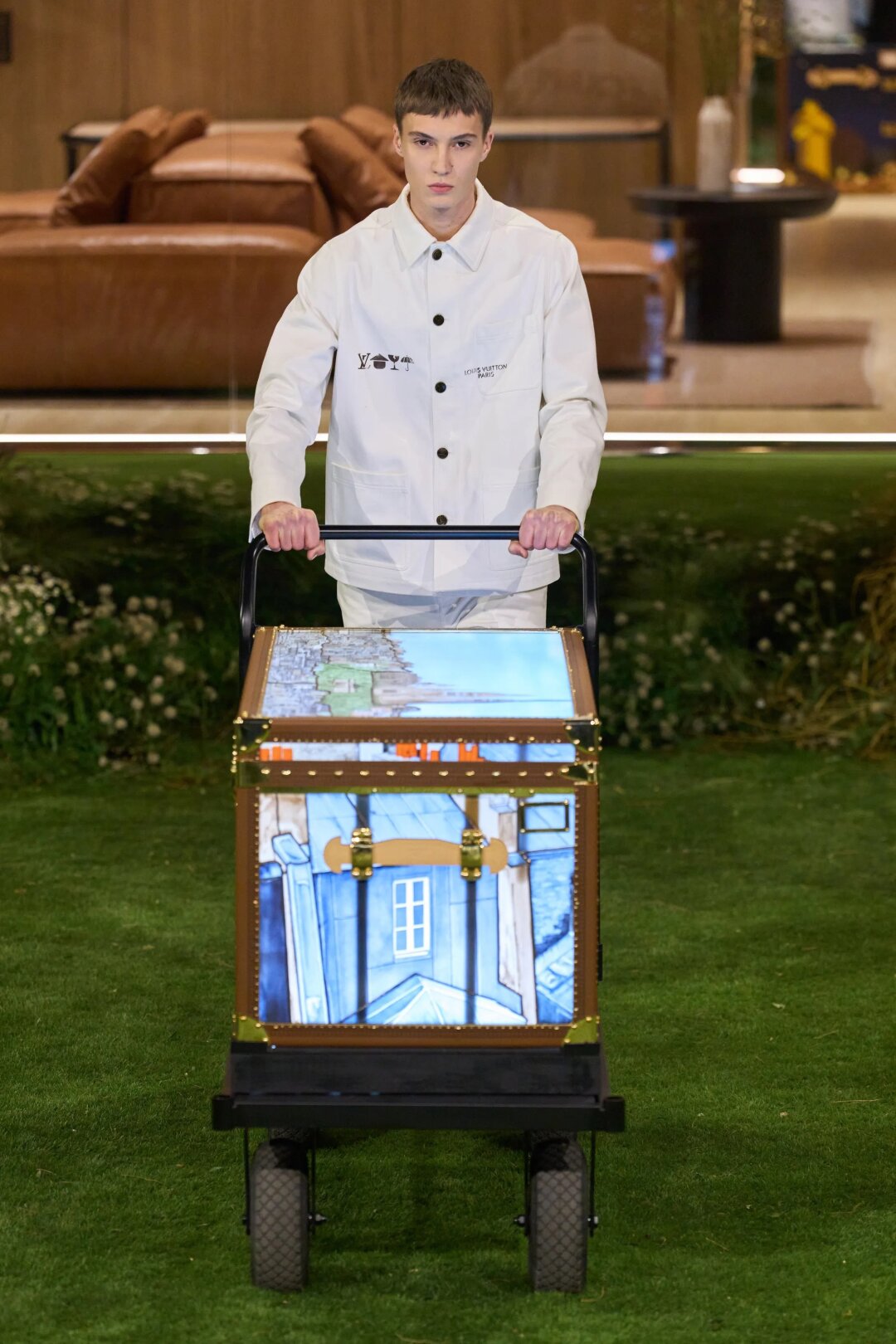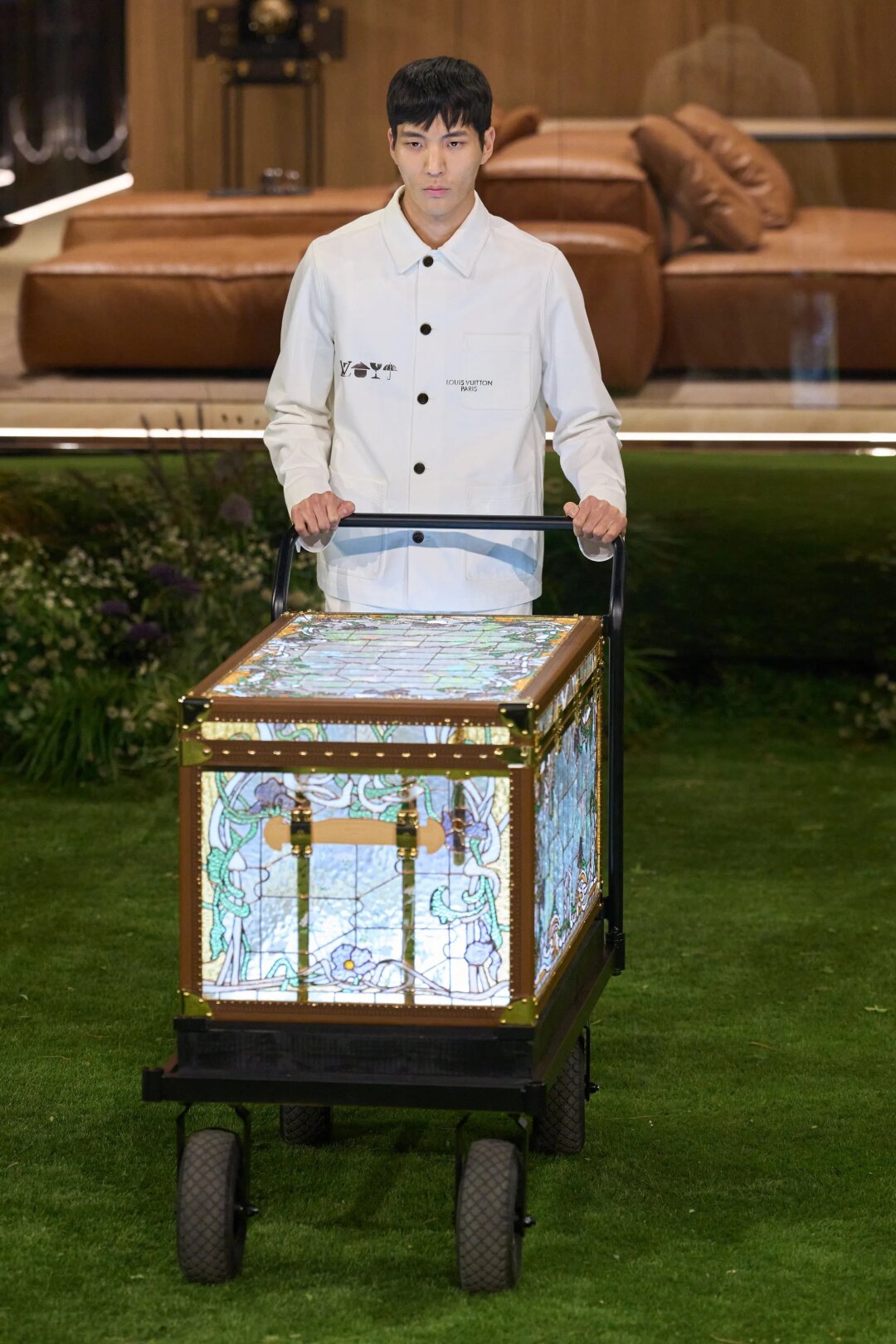 Как прошел показ Louis Vuitton в Париже: денди, преппи и сундуки в витражах