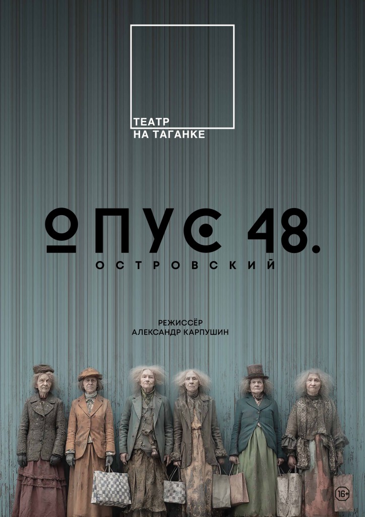 31 января, 10 февраля, 21 и 22 марта в московском Театре на Таганке (Новая сцена) пройдут премьерные показы спектакля «Опус 48. Островский». Режиссер — Александр Карпушин, художник — Константин Соловьев, художник по свету — Игорь Фомин. В спектакле заняты: Ирина Апексимова, Дарья Авратинская, Анатолий Григорьев, Алексей Гришин, Сергей Векслер, Антон Ануров, Игорь Ларин, Галина Володина, Алла Смирдан, Дарья Десницкая, Евгения Стегний, Ксения Мон Сор, Надежда Флерова.