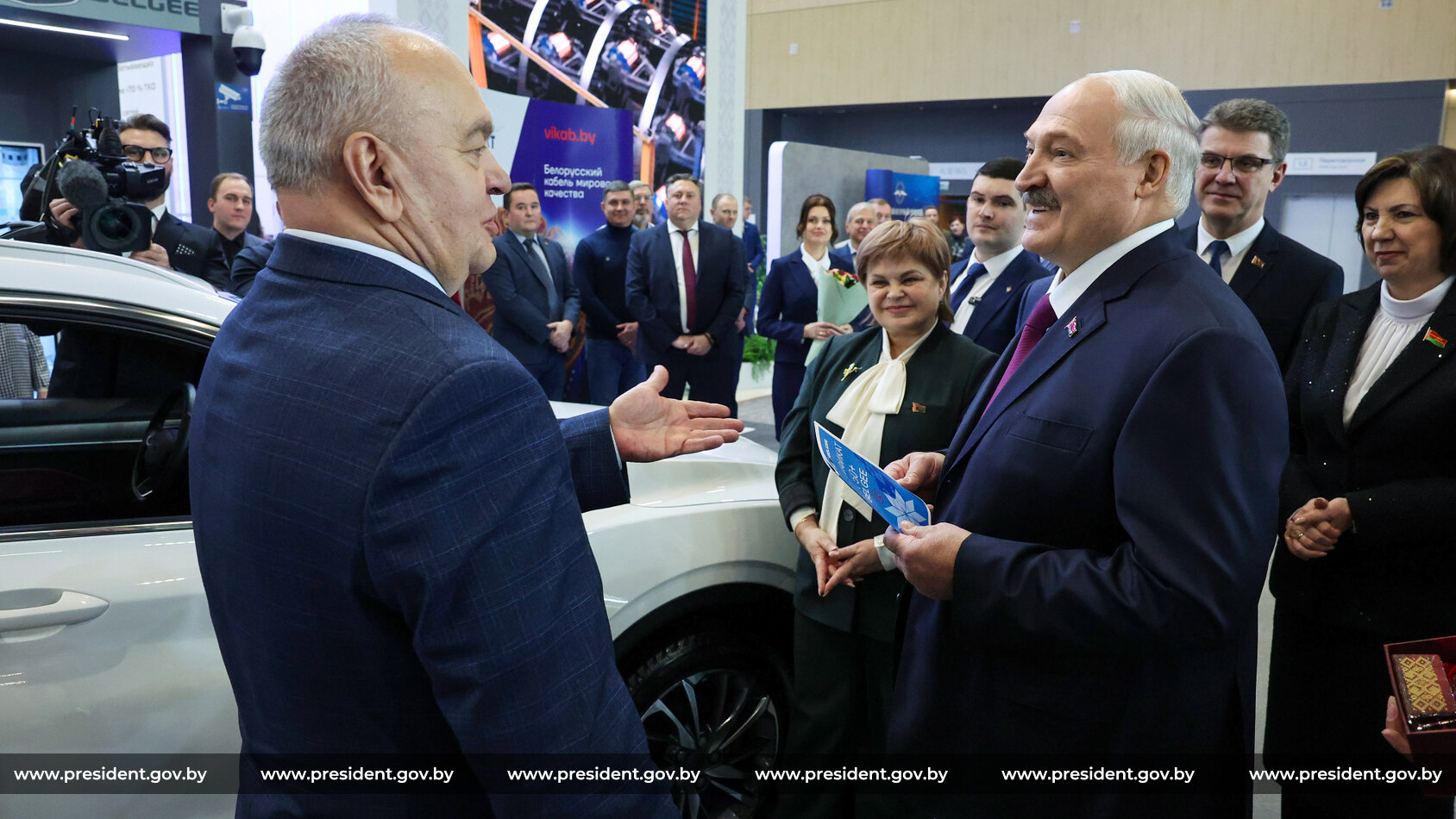Во время официальной церемонии генеральный директор предприятия Геннадий Свидерский преподнёс белорусскому лидеру сертификат на рестайлинговую модель кроссовера BELGEE X50+. На текущий момент производственные мощности уже выпустили несколько десятков таких транспортных средств.