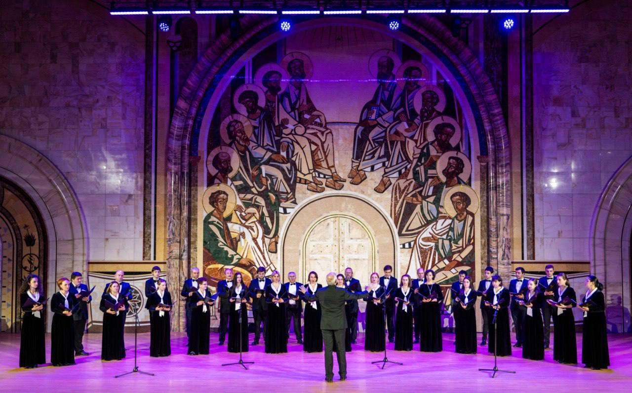Государственная хоровая капелла Республики Абхазия открыла вечер двумя произведениями: «Молим Тебя, Святая Мария» Куасты Ченгелии и духовным концертом «Моление Богу» (часть I) Нодара Чанбы.
