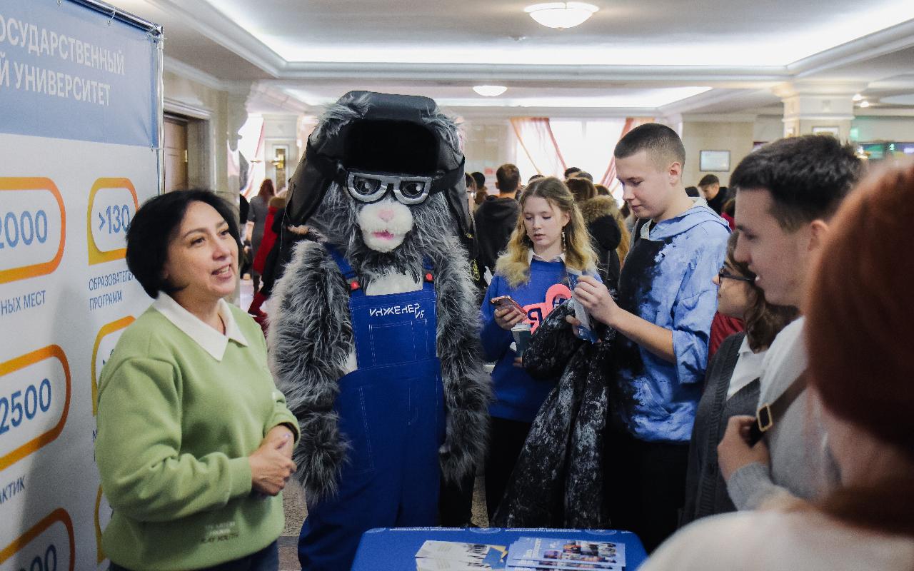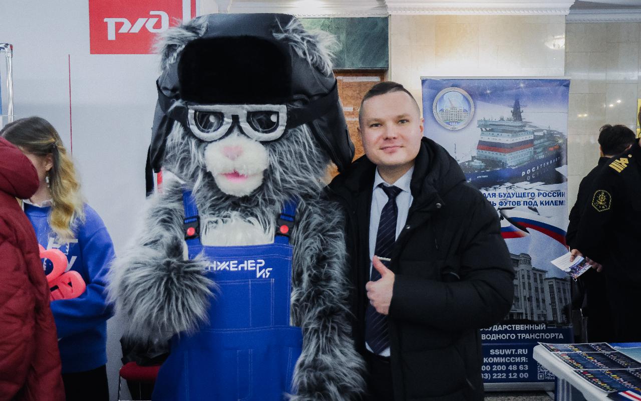 Сотрудники приёмной комиссии НГПУ подробно отвечали на вопросы гостей, помогая разобраться в правилах поступления и выбрать подходящее направление подготовки. Атмосферу общения дополнял и символический помощник — Кот Инженерик, который привлекал внимание будущих студентов и создавал неформальный, дружелюбный настрой.
