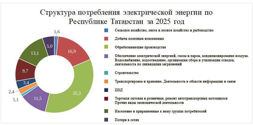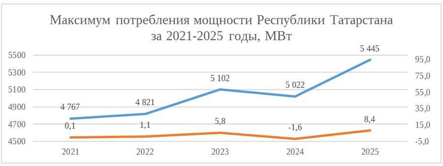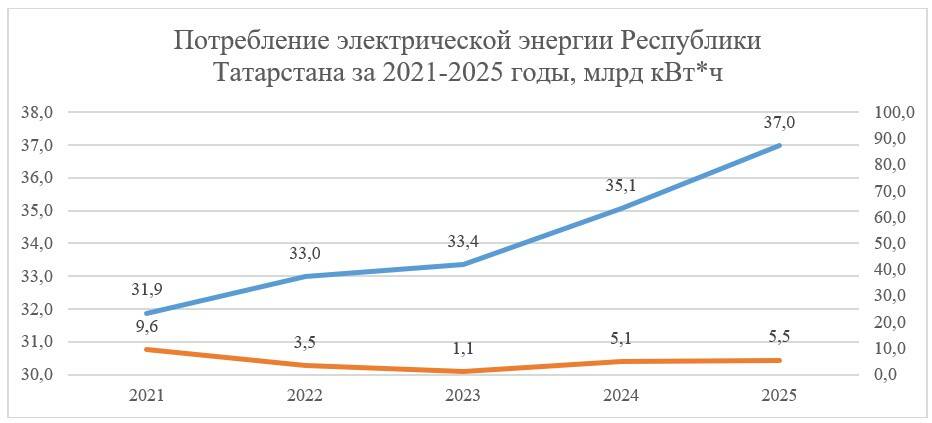 Это существенно выше среднероссийских темпов (для сравнения: по ЕЭС России потребление электроэнергии за 2025 год сократилось на 1,1%, – прим. Т-и). Но важнее, что этот рост в Татарстане имеет устойчивый характер.