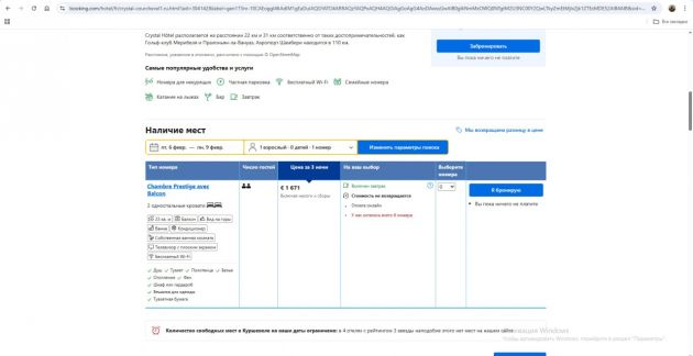 Самый роскошный отель Apogée Courchevel, Oetker Hotels предлагает люксовый номер со всеми удобствами на одного человека стоимостью 24 494 евро. Это на три ночи в люксовом номере с одной спальней. Посмотрим на актуальный курс валюты – 2 222 830 рублей. Номер в самом дешевом отеле в Куршевеле тоже многим далеко не по карману. Гостиница Crystal Hôtel просит за три ночи в "престижном" (единственный вариант) номере 1 671евро. В рублях – около 151 640 рублей. Самый дешевый вариант: жить в апартаментах. Цена за три ночи в самом простом Charmant appartement 3 etoiles – 782 евро, то есть, примерно 70 996 рублей. Все равно немало.