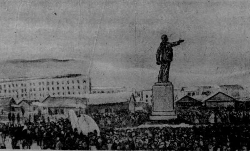 МАГАДАН. КОЛЫМА-ИНФОРМ. 22 января 1949 года на центральной площади Магадана (перед зданием Главного управления Дальстроя; позднее — объединения «Северовостокзолото») состоялось открытие памятника В. И. Ленину. Проект памятника разработан архитектором А. Липковским в 1948 году. Скульптурная фигура изготовлена в Москве, сборка отдельных её частей произведена в Магадане. По мнению И. Лукина, открытие памятника состоялось 14 февраля 1949 г. В 1987 г. перевезен в пос. Усть-Омчуг Тенькинского района.
