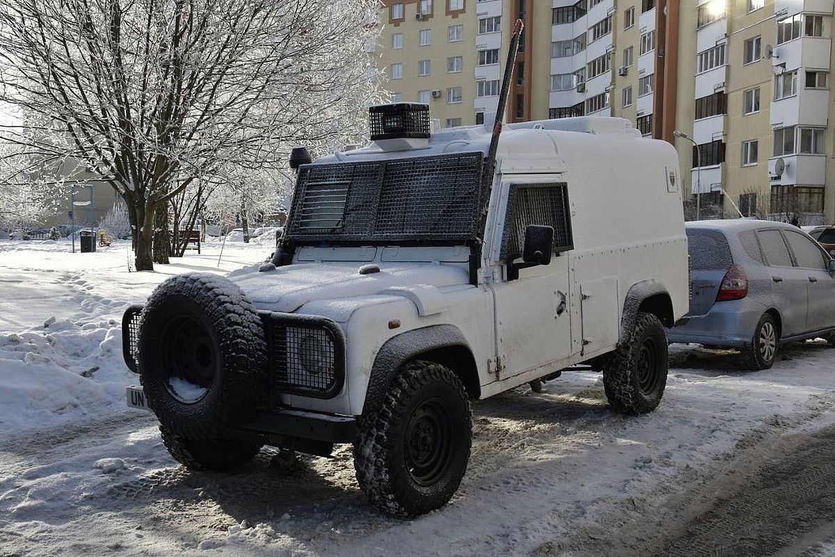 Удалось выяснить, что это Land Rover Defender Snatch. Легкий бронированный внедорожник был создан для перевозки личного состава и патрулирования и активно использовался британской армией. Особый интерес вызывали номера машины и герб, нанесенный на авто.