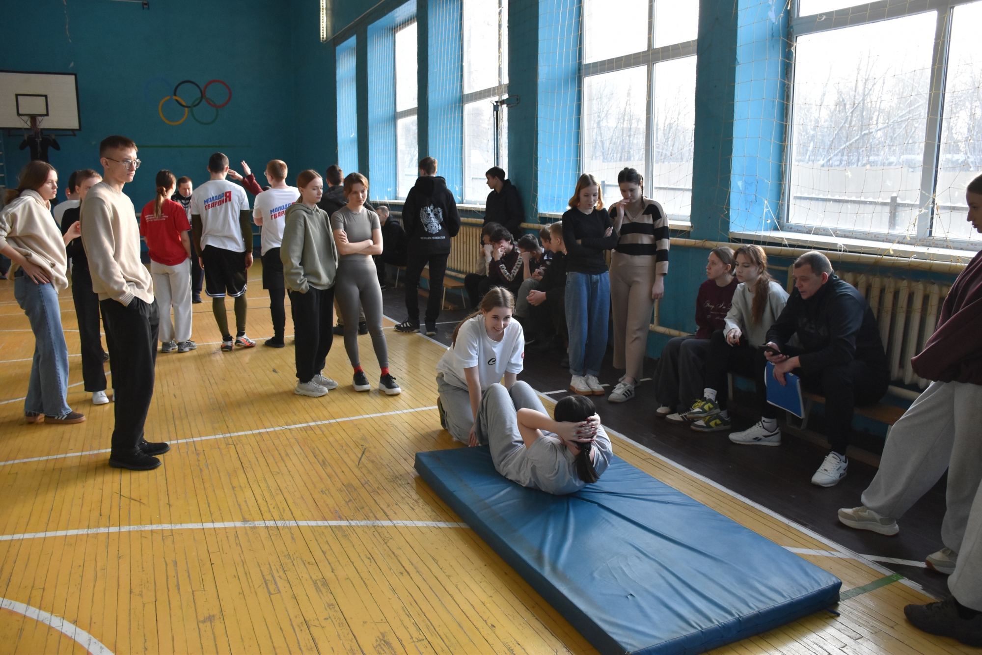 После этого ребята испытали свои силы в четырёх дисциплинах: наклонах вперёд на гимнастической скамье, подтягиваниях или отжиманиях, прыжках в длину и поднимании туловища из положения лёжа на спине.