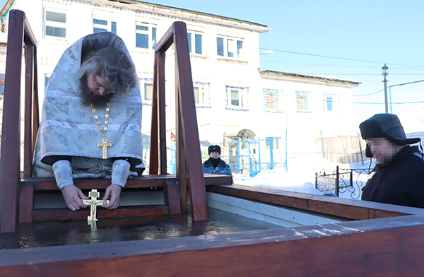 По традиции, всем желающим осужденным была роздана освященная крещенская вода. Кроме того, для верующих была организована купель, которую также освятили для символического омовения.