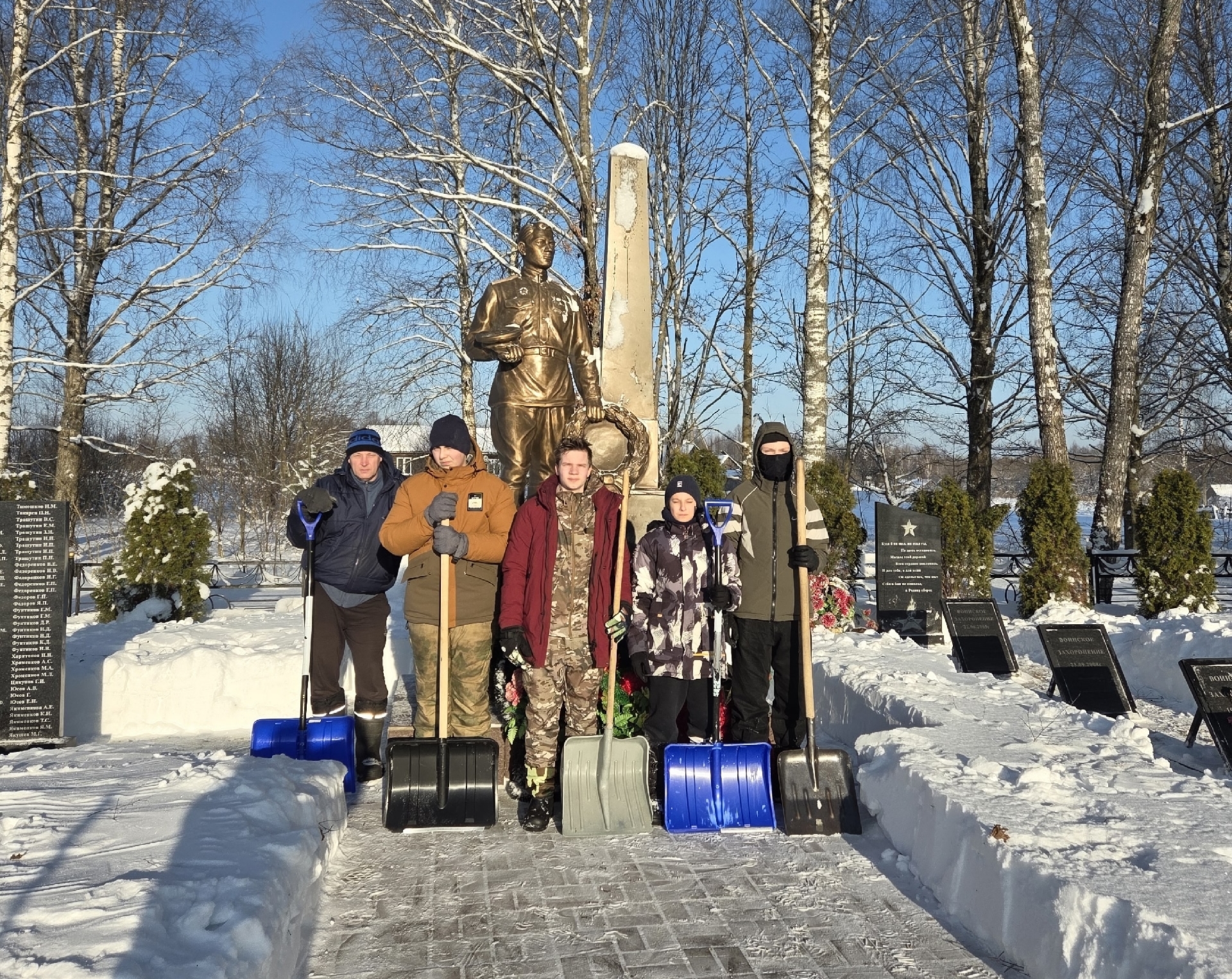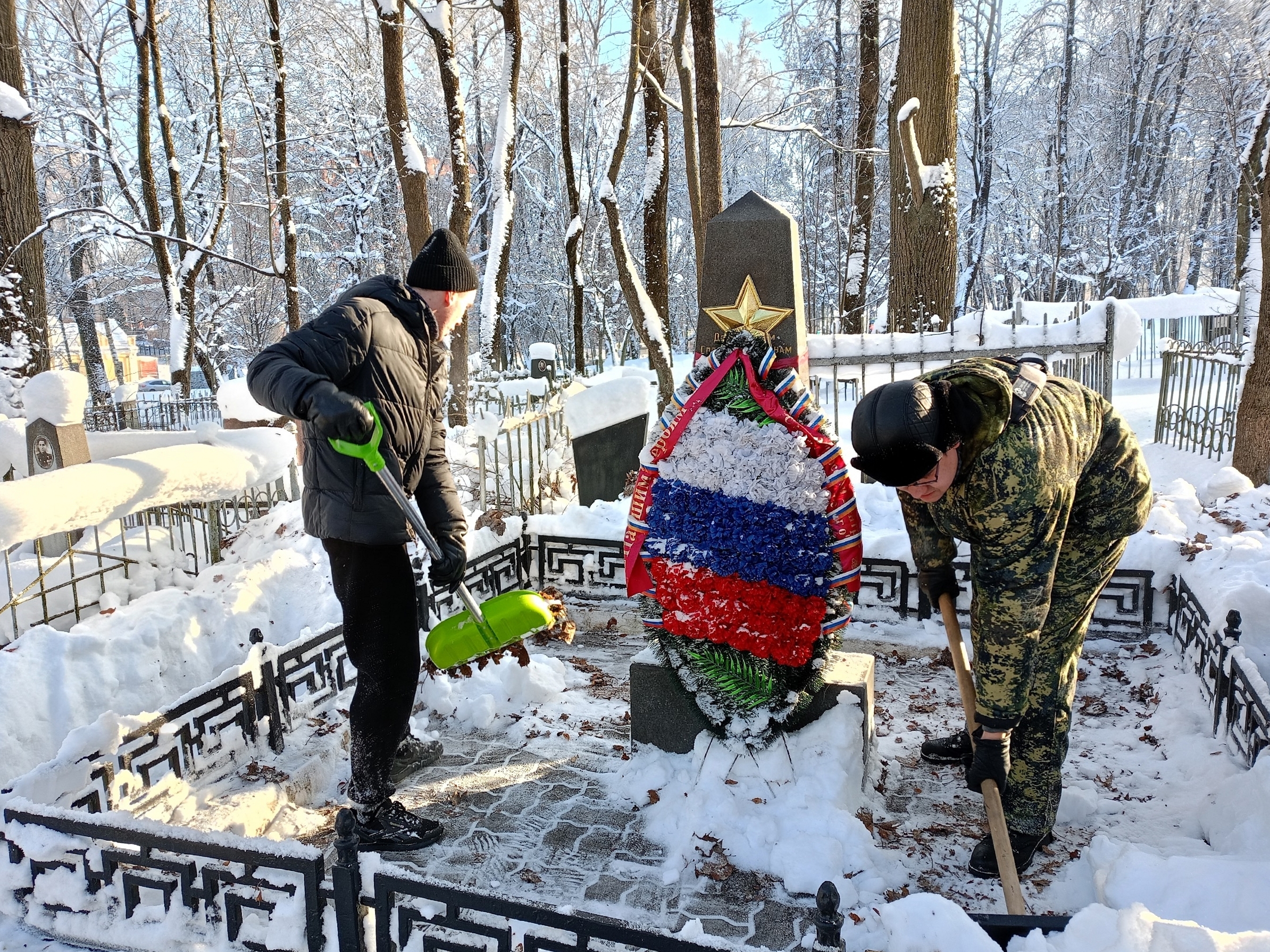 На кладбище «Клинок» бойцы поисковых отрядов «Славяне», «Донской», «Долг и честь», «Катюша» расчистили от снега могилы погибших защитников Отечества.