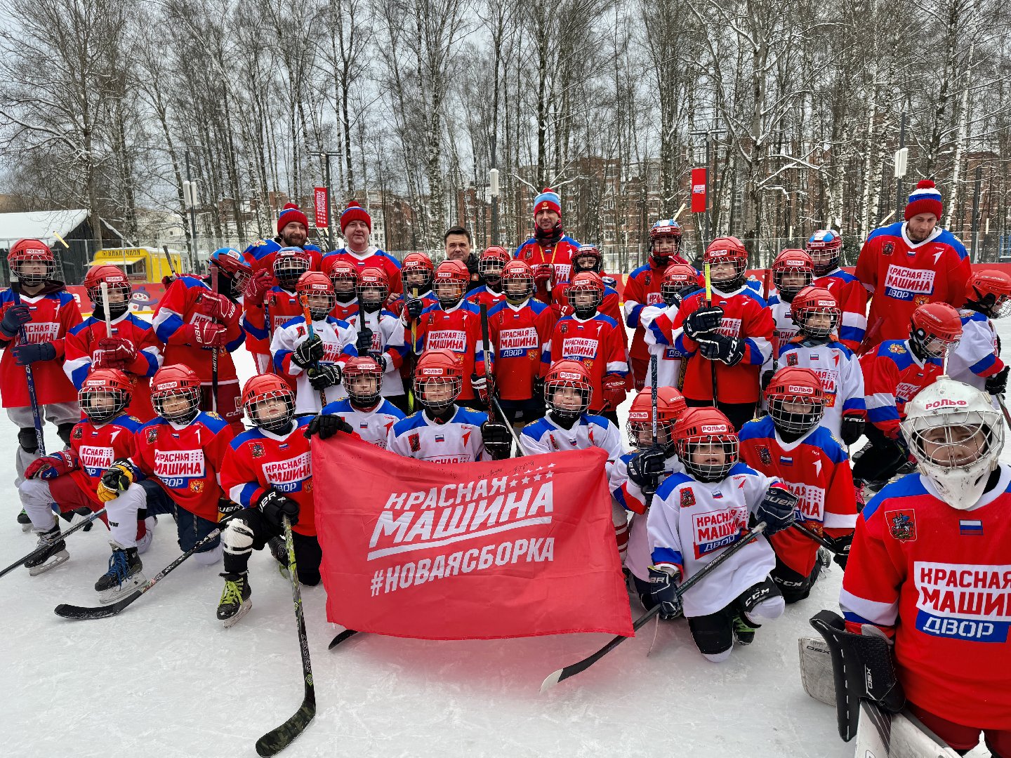 «Я благодарен правительству, Минспорта, Министерству благоустройства Московской области и лично губернатору Андрею Юрьевичу Воробьёву за поддержку и внимание к проекту «Красная Машина Двор – связь поколений», развитию массового детского спорта. Для ребят всегда дополнительная мотивация, когда руководитель региона приходит на лёд и видит всё своими глазами», – отметил первый вице-президент ФХР, главный тренер сборной «Россия 25», основатель школы «Красная Машина Юниор» Роман Ротенберг.