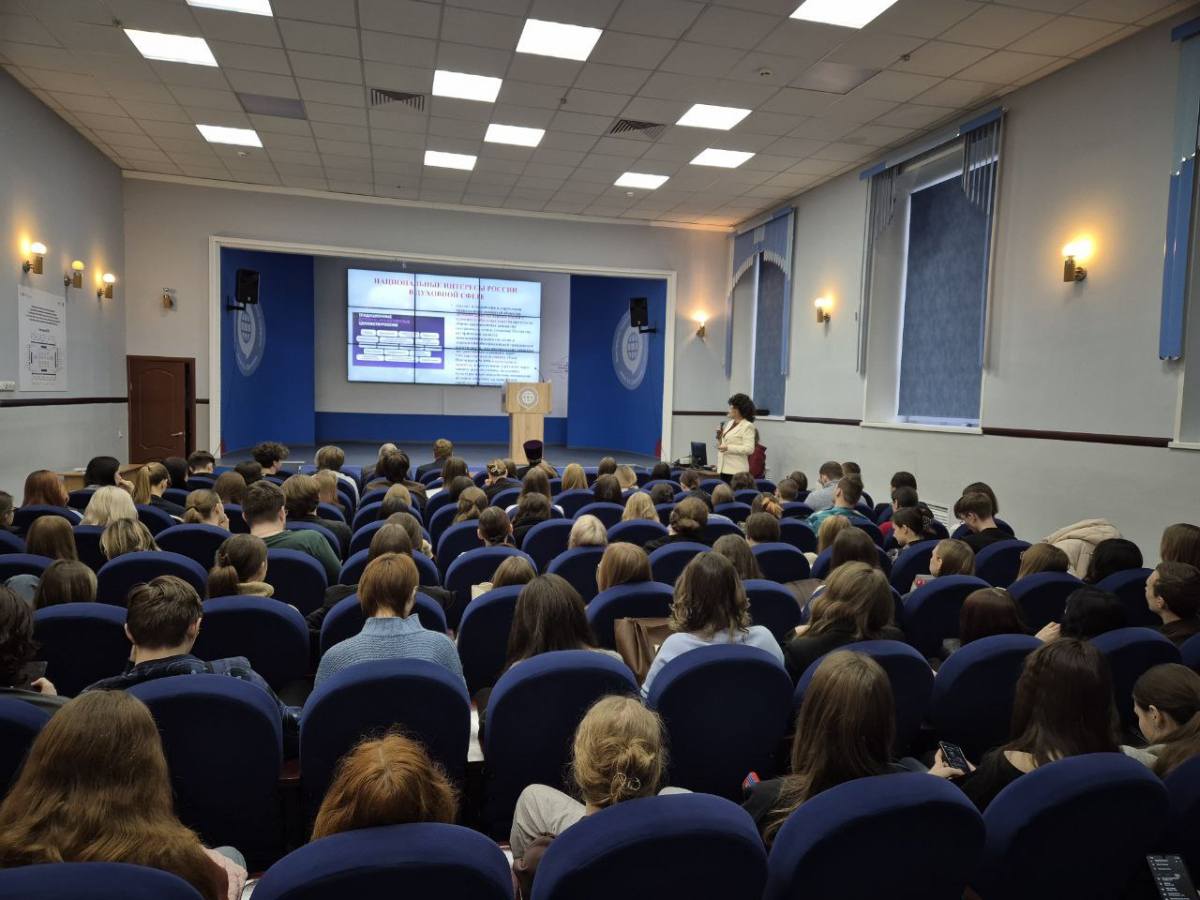 На секции «Российское государство-цивилизация как многоэтничное и многоконфессиональное общество» под руководством доктора исторических наук, доцента Ольги Сенюткиной студенты обсудили широкий круг вопросов: от сохранения ценностного восприятия литературы в цифровую эпоху и способов урегулирования конфликтов до специфики межконфессионального диалога, культурной интеграции народов (на примере российских немцев) и лингвистических аспектов перевода концепта «соборность».