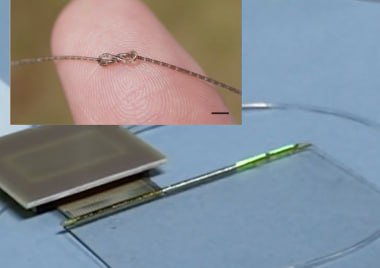 Для этого они нанесли элементы интегральных схем на гладкую нанопленку, защитив плотным покрытием, а затем скрутили ее в плотную многослойную спираль – подобно тому, как заворачивают суши. Каждый сантиметр такого волокна вмещает 100 тысяч транзисторов – а на одном его метре можно разместить столько же транзисторов, сколько в центральном процессоре компьютера. При этом «волоконный чип» стабильно работает при завязывании узлов, спокойно переносит стирку – и даже выдерживает наезд многотонного грузовика.