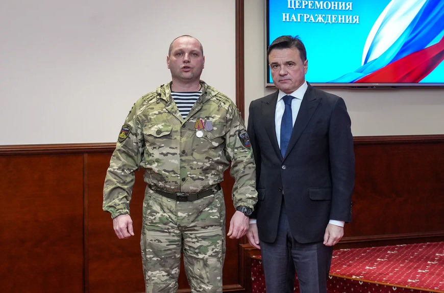 Губернатор Московской области Андрей Воробьев вручил героям государственные награды – медали «За храбрость» II степени. Среди награжденных — наш егорьевский боец с позывным «Вицин».