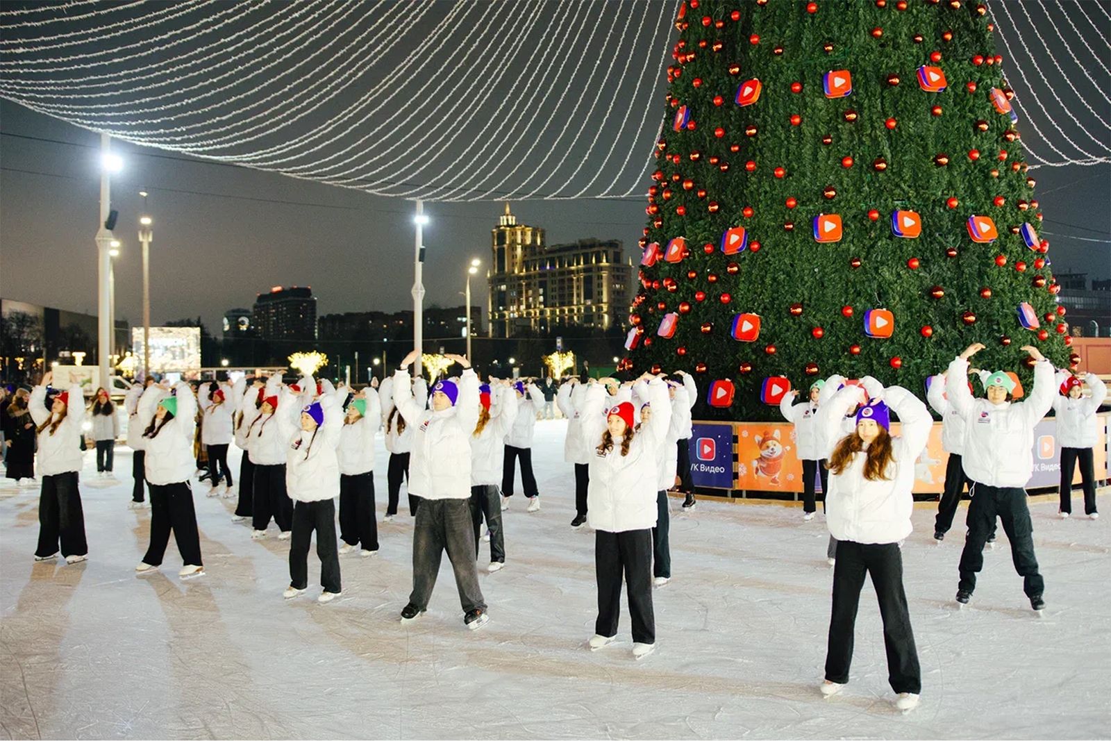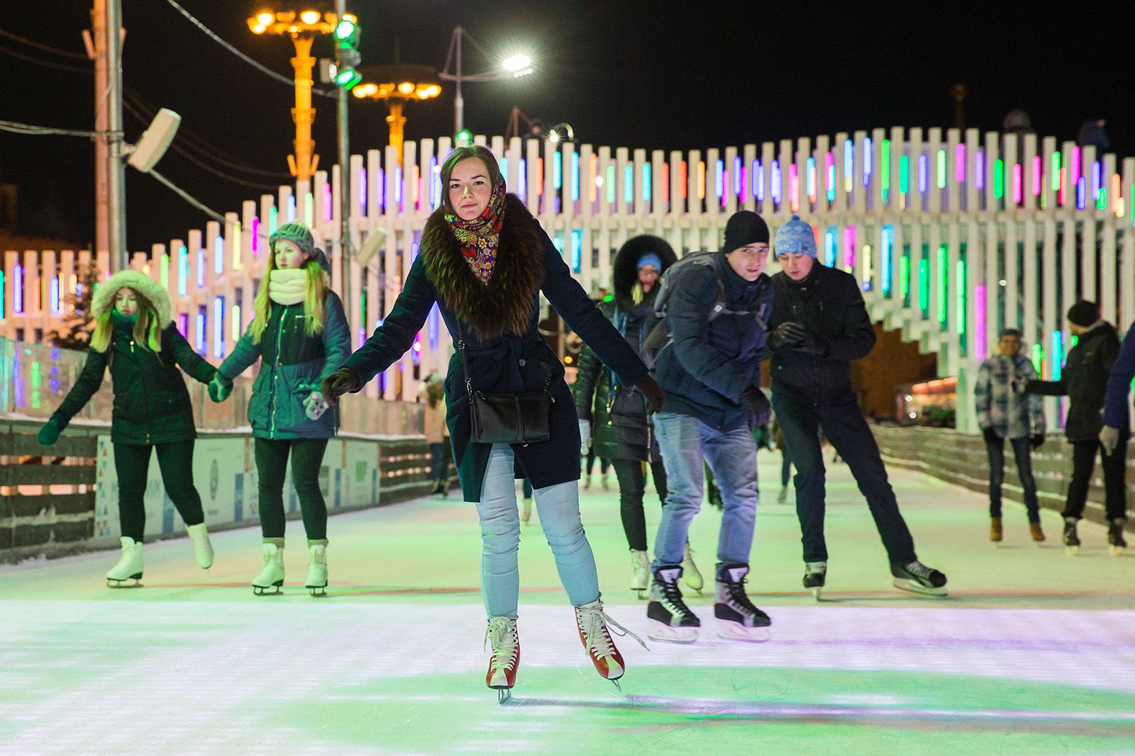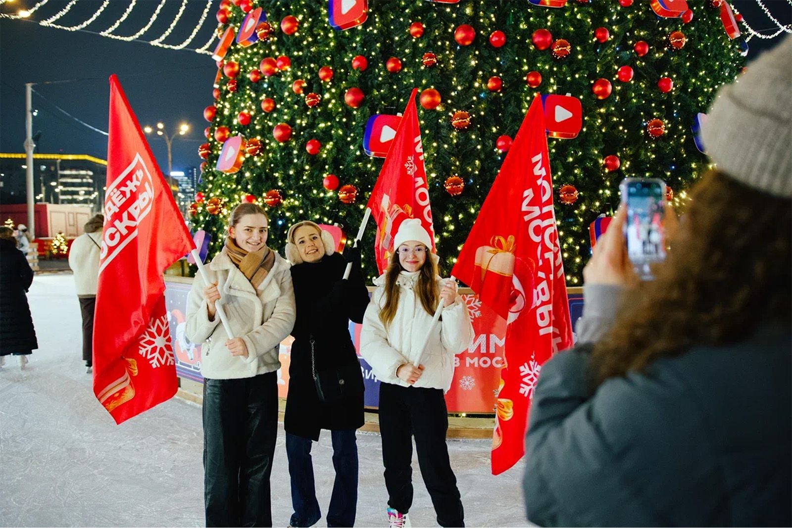 На катке на Болотной площади выступят выпускники творческого лагеря «Молодежь Москвы» и бенд «НЧБ». Посетителей также пригласят присоединиться к праздничному хороводу.