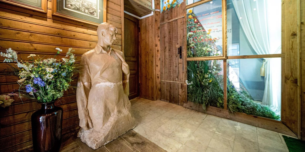 Российский посол передал белорусской стороне мраморный бюст Сергея Есенина, который украсил выставку.
