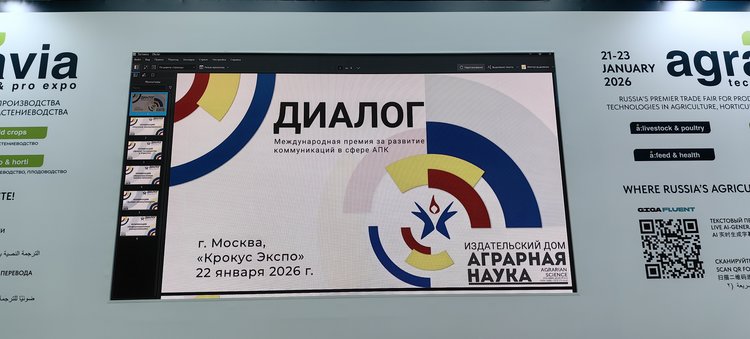IV Международная премия за развитие коммуникаций в области АПК «Диалог» состоялась 22 января 2026 года на площадке выставки AGRAVIA в МВЦ «Крокус Экспо». Организатор премии ИД «Аграрная наука».