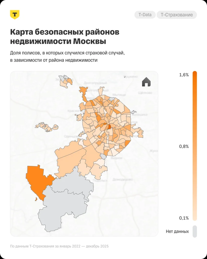 С 2022 года по 2025 год наибольшее количество страховых случаев с жильем было зафиксировано в трех районах Москвы: Замоскворечье, Арбат и Бекасово. Об этом «Стройгазете» сообщили в пресс-службе платформы «Т-Страхование», эксперты которой выяснили в каких районах Москвы жители чаще всего сталкивались с происшествиями в квартирах за последние четыре года.