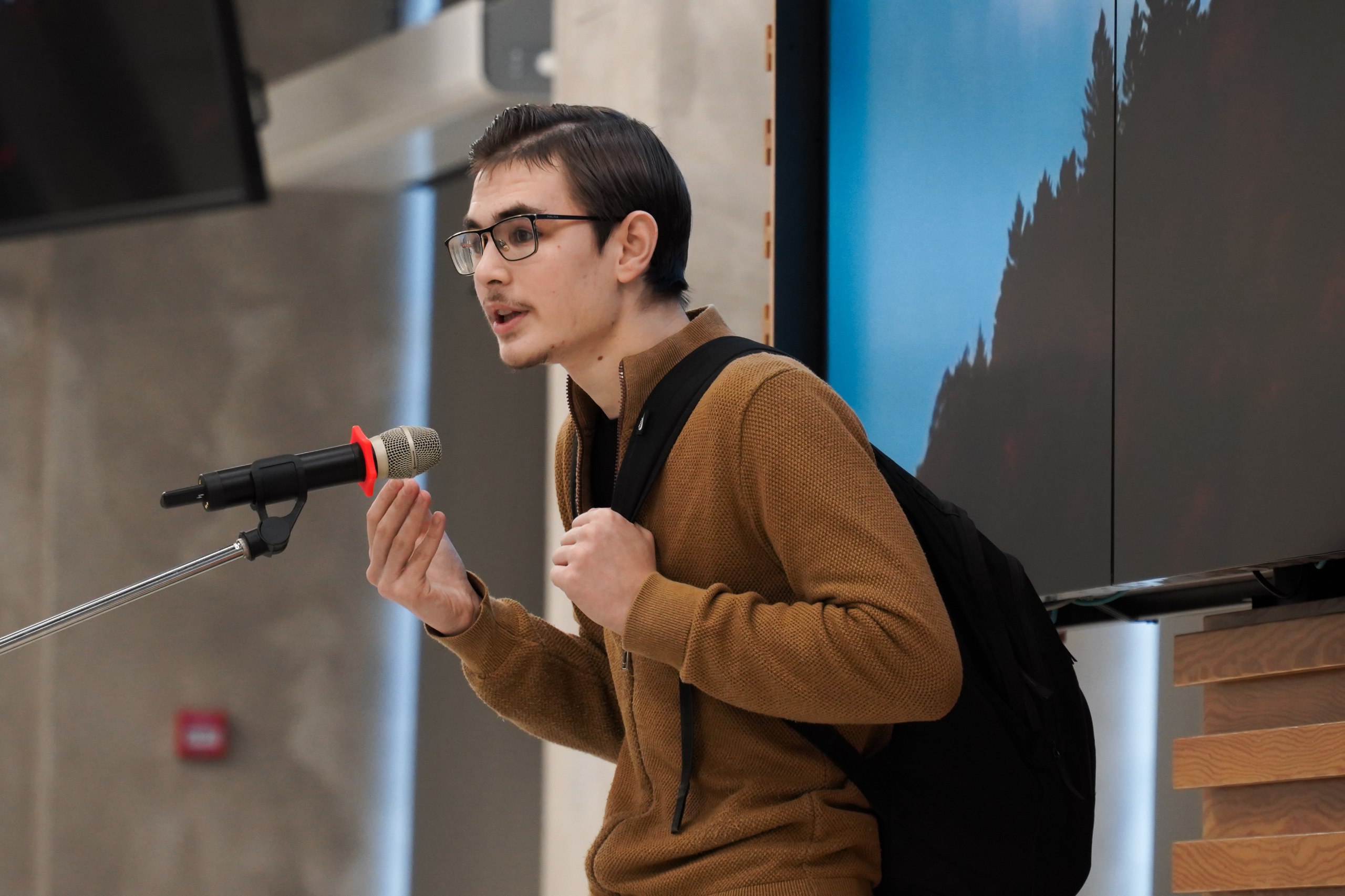 Видеообращение финалистам также направил участник I Всероссийского конкурса осмысленного чтения, магистрант Новосибирского государственного университета Владислав Игоревич Манюк.