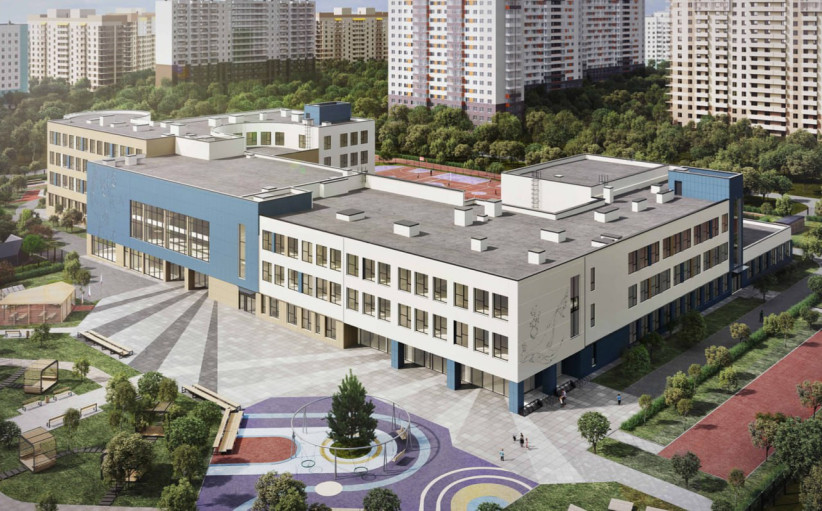 Среди общих пространств — два многосветных многофункциональных атриума (на 135 и 216 мест), столовая на 450 посадочных мест. Кроме того, предусмотрены два универсальных трансформируемых спортзала.