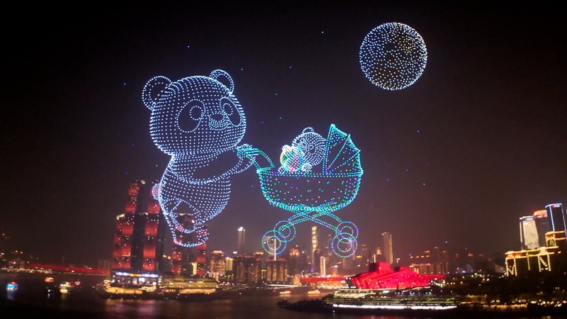 Чунцин стал городом номер один для поклонников технологичных представлений. С прошлого года в мегаполисе регулярно проводят масштабные световые шоу: ночью небо над городом превращается в полотно, где тысячи дронов рисуют сияющие трёхмерные картины.