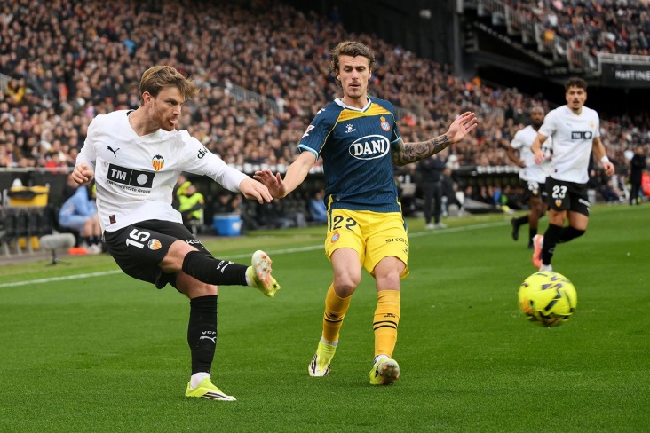 После 21 матча чемпионата Испании «Эспаньол» набрал 34 очка и занимает пятое место в турнирной таблице. «Валенсия» заработала 23 очка и располагается на 13-й строчке.