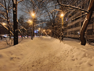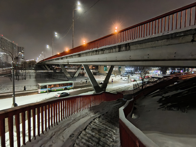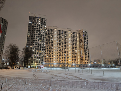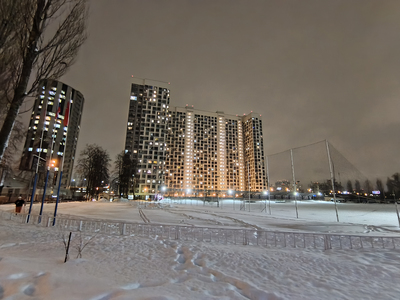 Ночью детализация снижается, изображение становится шумным, а источники света заметно бликуют. Активация режима SuperNight немного вытягивает детали за счет увеличения резкости (делая это в меру), подавляет шум через сглаживание текстур и приглушает блики. Но снимки становятся ярче, из-за чего ночная сцена может выглядеть неестественно светлой.