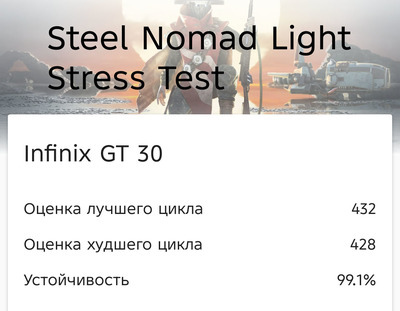 - Steel Nomad Light Stress Test – 432 (лучшая), 428 (худшая)