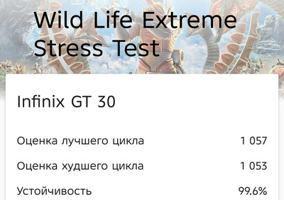 - Wild Life Extreme Stress Test – 1057 (лучшая), 1053 (худшая)