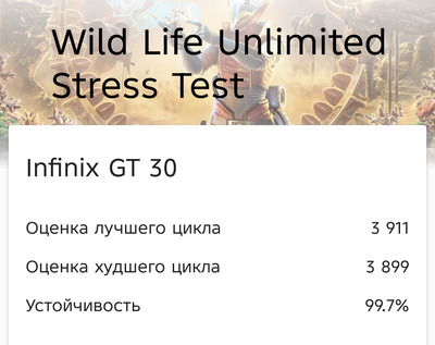 - Wild Life Unlimited Stress Test – 3911 (лучшая), 3899 (худшая)