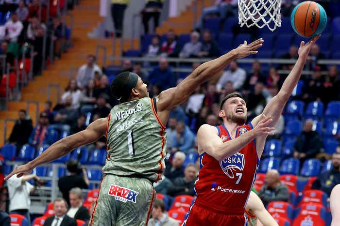 Субботняя «перестрелка» началась так, будто оппонентам не интересна защита. Команды исправно набирали очки, при этом в оба кольца мяч влетал едва ли не после каждого броска. Неудивительно, что в первом игровом отрезке дружины блеснули результативностью – 34:26. Конечно, преимущество, добытое красно-синими в концовке периода, настраивало болельщиков на приятный лад. Во второй же четверти москвичи продолжили начатое, в какой-то момент отрыв в их пользу вырос до неприличных +18. Казалось, всё пойдёт в одном направлении. Но нет. Армейцы во второй половине отрезка просто перестали забивать, эффективность нападения снизилась, что сразу же повлияло на ход событий. На большой перерыв коллективы ушли при счёте 60:50. Да, сложно рассчитывать на что-то серьёзное, если ты пропускаешь 34 за четверть и 60 за половину. Но ведь сине-бело-голубые и забить сумели много, учитывая качество обороны ЦСКА.