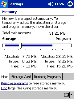 При всём этом, в ранних устройствах на WM все пользовательские данные хранились в ОЗУ, так что от 64 мегабайт обязательно откушивался небольшой процент для фотографий, видосов и прочего контента. Чаще всего это было 15-20МБ. При этом объём выделяемой памяти под контент можно было регулировать на лету с помощью специальной программы в панели управления: