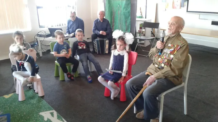 В 2019 году мы с Виктором Ульяновичем и другими ветеранами побывали в гостях в школе «Эрудит» (руководитель Ирина Мухина). Подробности здесь: Концерт для ветеранов в честь Дня Победы прошел в школе «Эрудит»