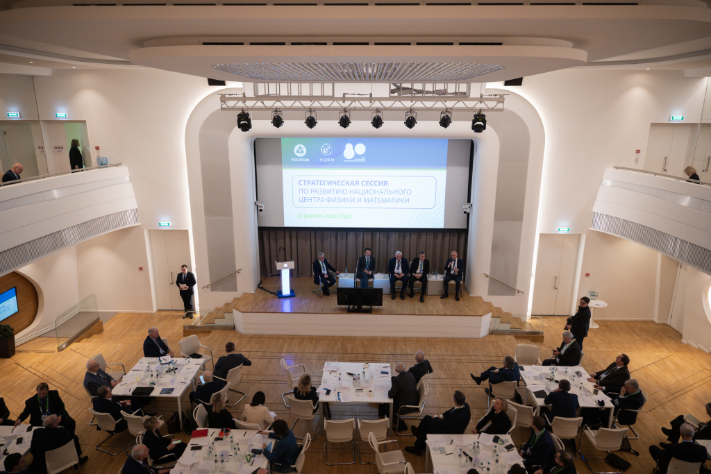 В Москве 22 января в центральном здании госкорпорации «Росатом» на Большой Ордынке состоялась стратегическая сессия по реализации федерального проекта «Создание Национального центра физики и математики (НЦФМ)». В обсуждении итогов первых пяти лет и планов дальнейшего развития НЦФМ приняли участие представители органов государственной власти Российской Федерации, Нижегородской и Томской областей, Российской академии наук, госкорпорации «Росатом» и её организаций, НЦФМ, Московского государственного университета им. М.В. Ломоносова и его филиала в городе Сарове, образовательных организаций высшего образования, молодые учёные, выпускники и студенты филиала МГУ в Сарове.