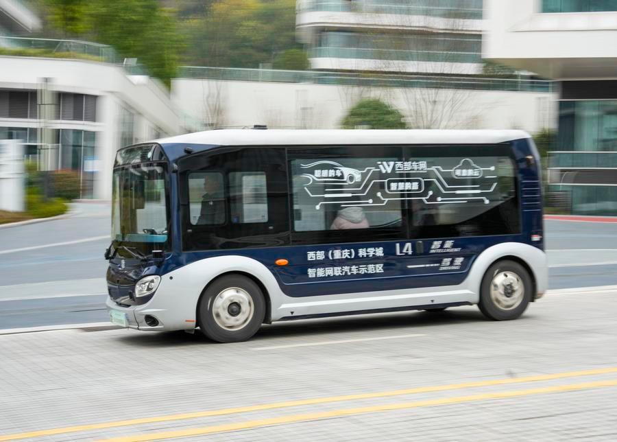 9 января 2025 года, автомобиль с полной автономностью движения уровня L4 движется в демонстрационной зоне интеллектуальных подключенных автомобилей в Западном наукограде в городе Чунцин /Юго-Западный Китай/. /Фото: Синьхуа/